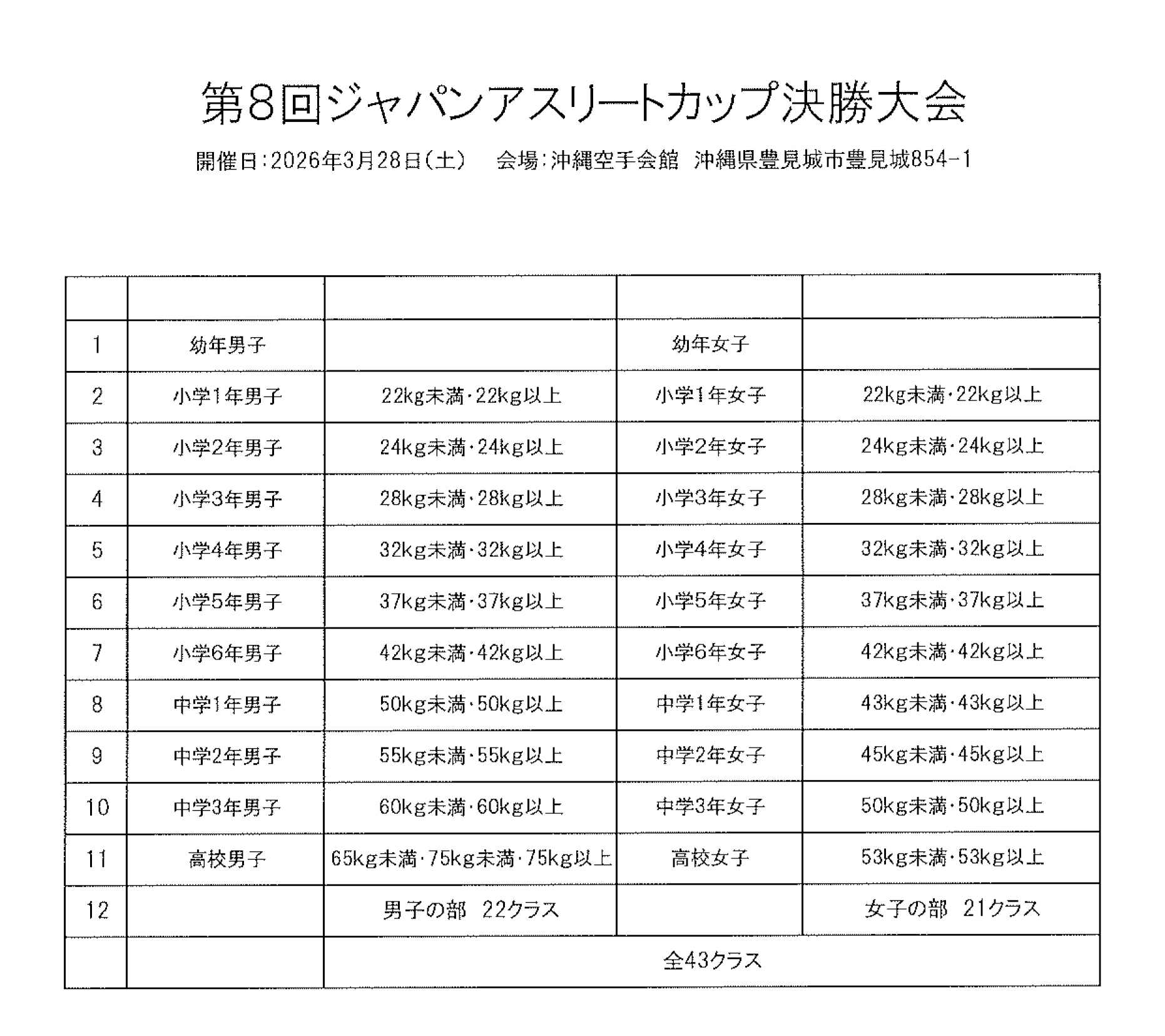 2025.10.21 ニュース wkojapan 第8回ジャパンアスリートカップ決勝大会クラス分け ポスト シェア はてブ 送る Pocket 第8回ジャパンアスリートカップ決勝大会のクラス分けを掲載いたします。 シェア! ポスト シェア はてブ 送る Pocket feedly